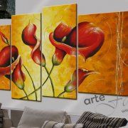 Quadro moderno fiori diviso raffigurante calle rosse dipinto modulare olio su tela. Colori forti e decisi, per dare stile alle pareti della vostra casa!